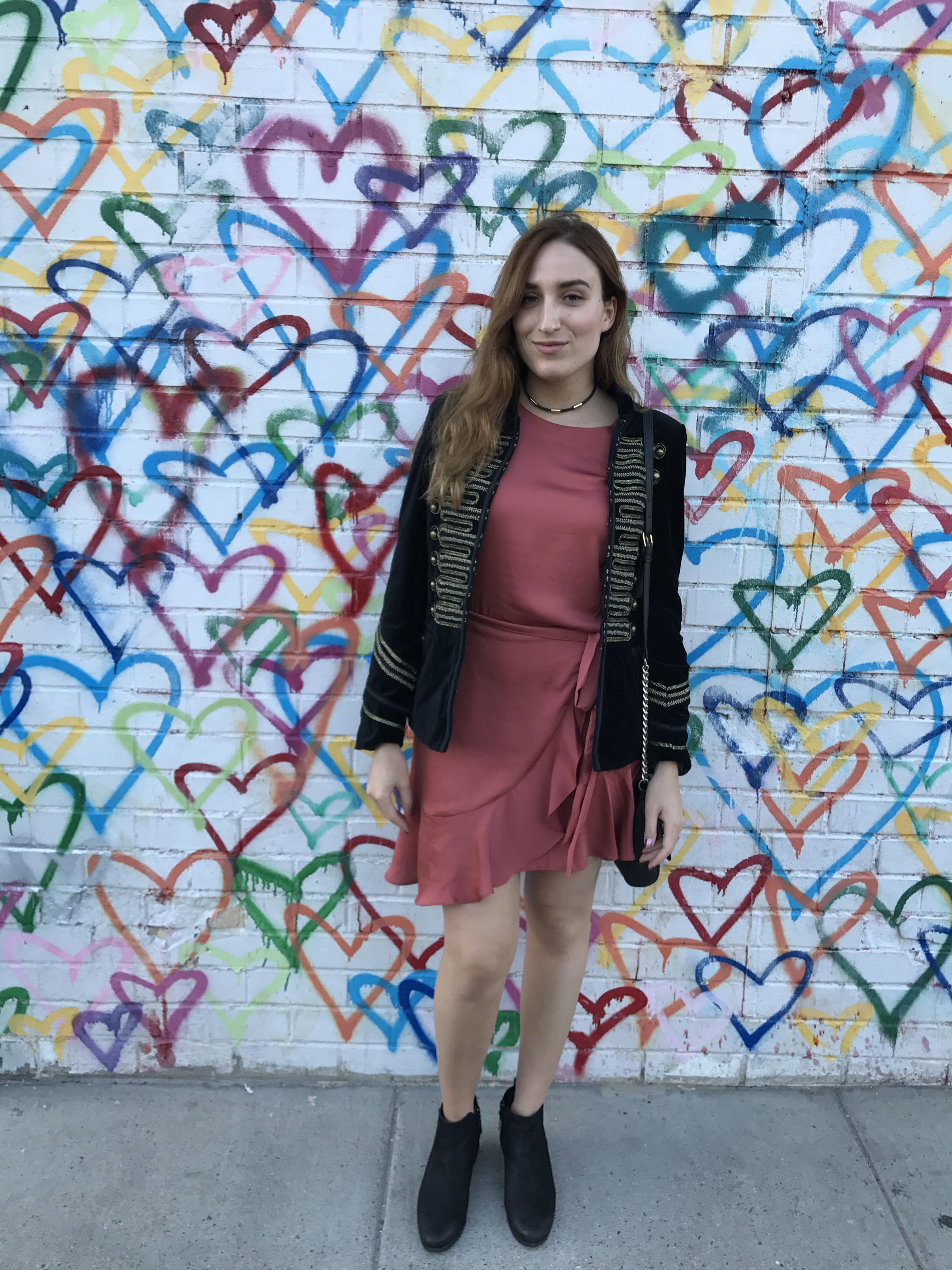 (Dress: ASTR, similar style / Jacket: similar style / Boots: Blondo /Bag: BP)