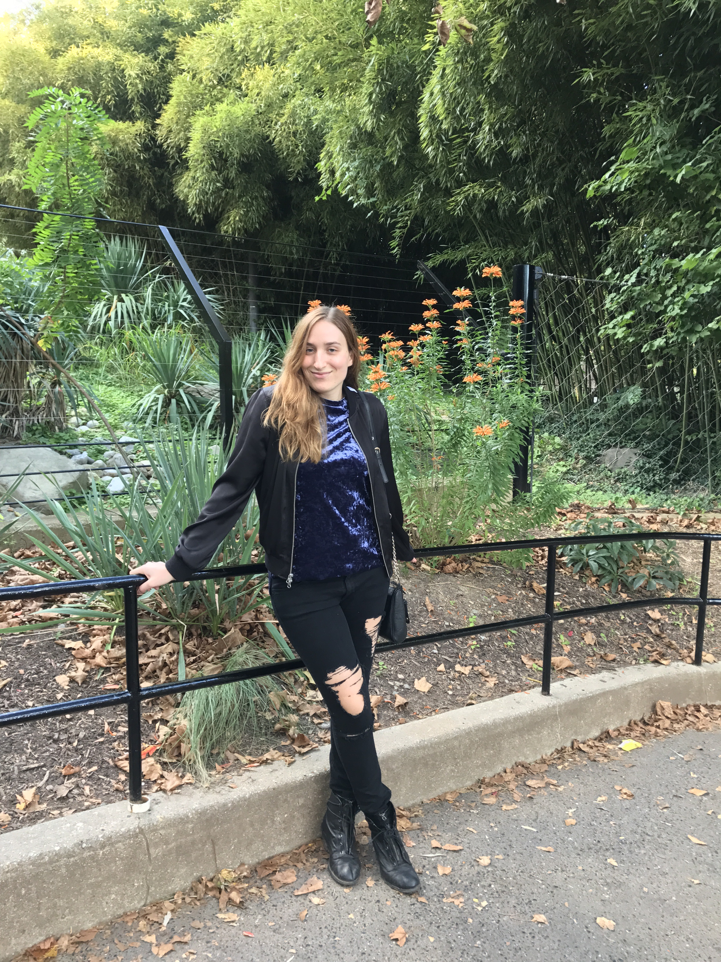 So what do you wear while trekking around the zoo? Sturdy, comfy boots like these black combats I’ve had for years, jeans to keep warm, a fun top of your choice (I’m a sucker for velvet), and a cute animal-themed extra to add just the right amount of humor to your outfit… 😉