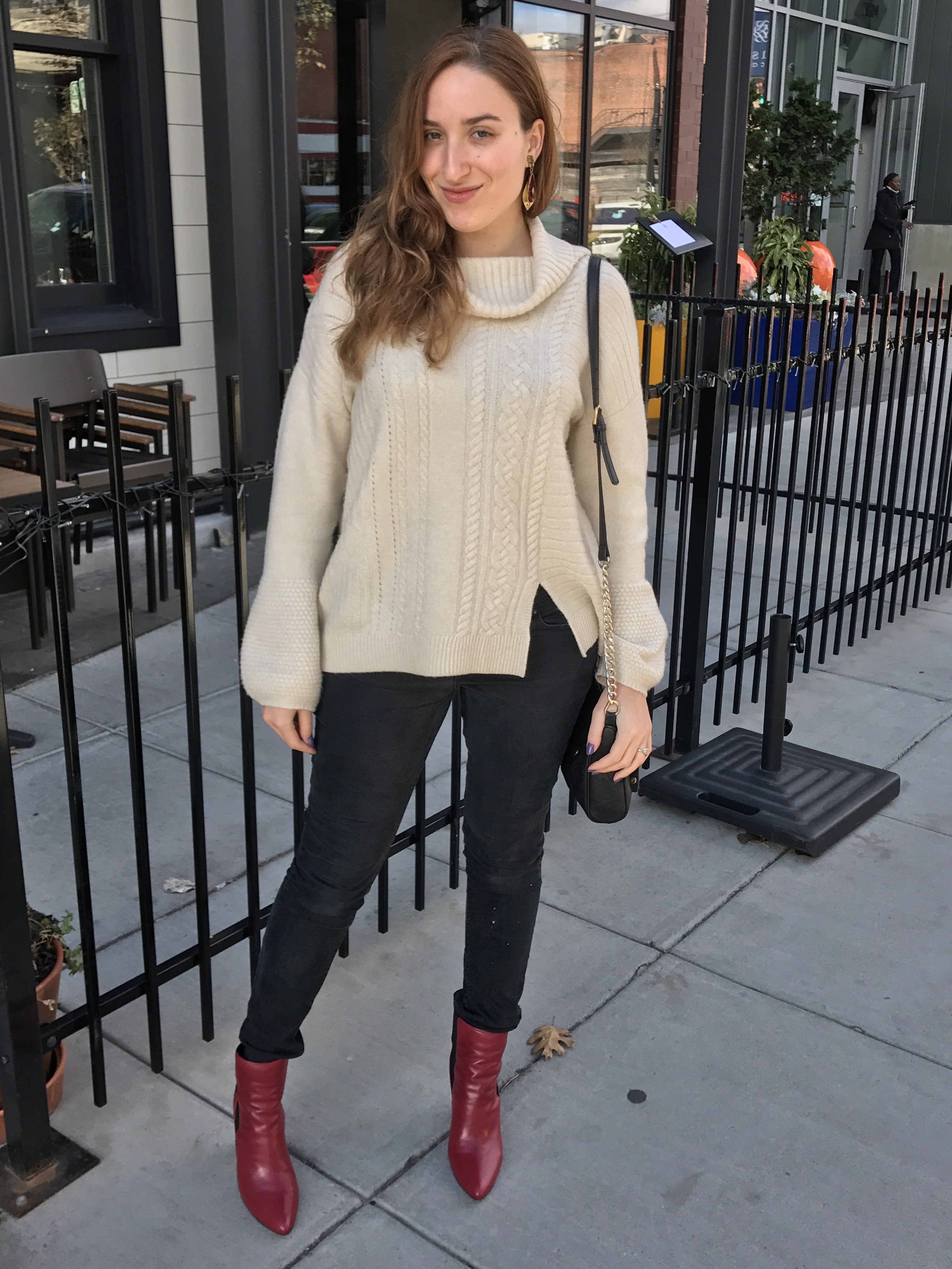 I wore this outfit to brunch at the delightful Kyirisan in Shaw (a must-eat spot). This sweater is beyond amazing – I’m basically wearing a blanket as a top. And the great part is that this sweater is also work-appropriate with printed slacks or a fitted pencil skirt.