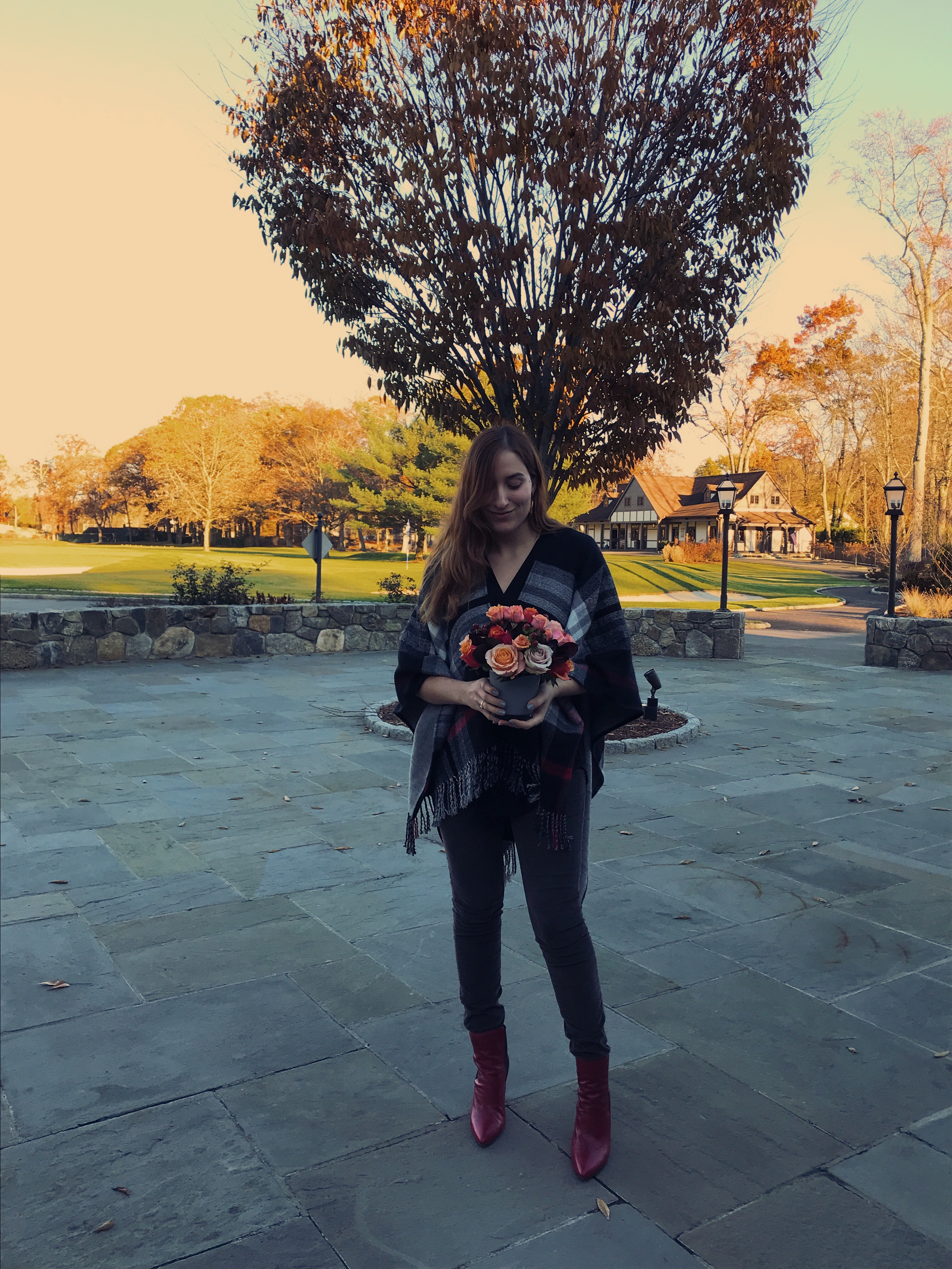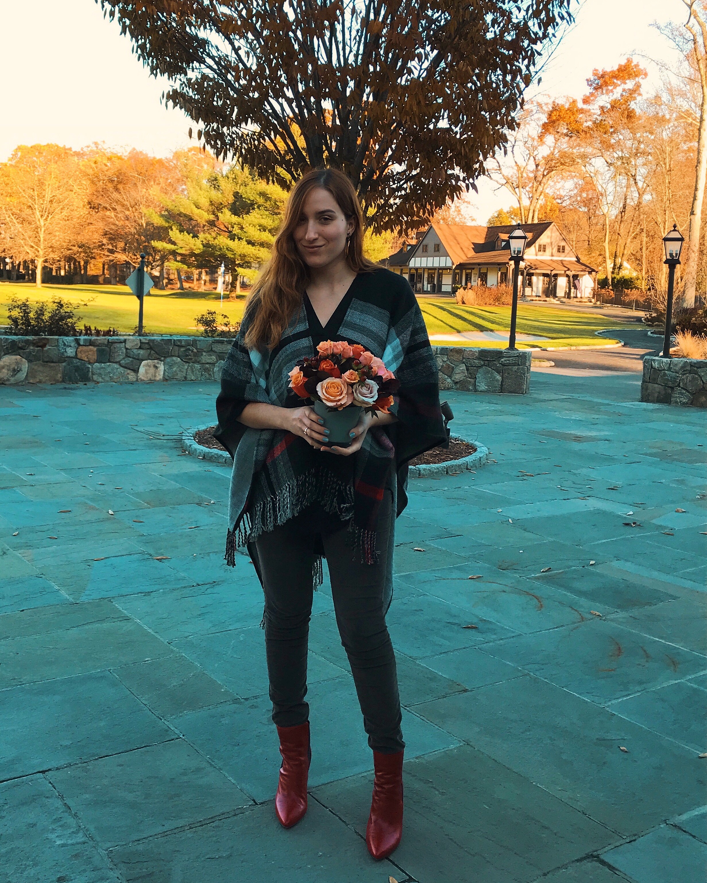 For this temperate Thanksgiving in Connecticut, I chose to wear an airy black top and comfortable gray cords. My new favorite Vince Camuto boots add just the right amount of spice to this look. And this cozy wrap to hide my imminent food baby *of course.*