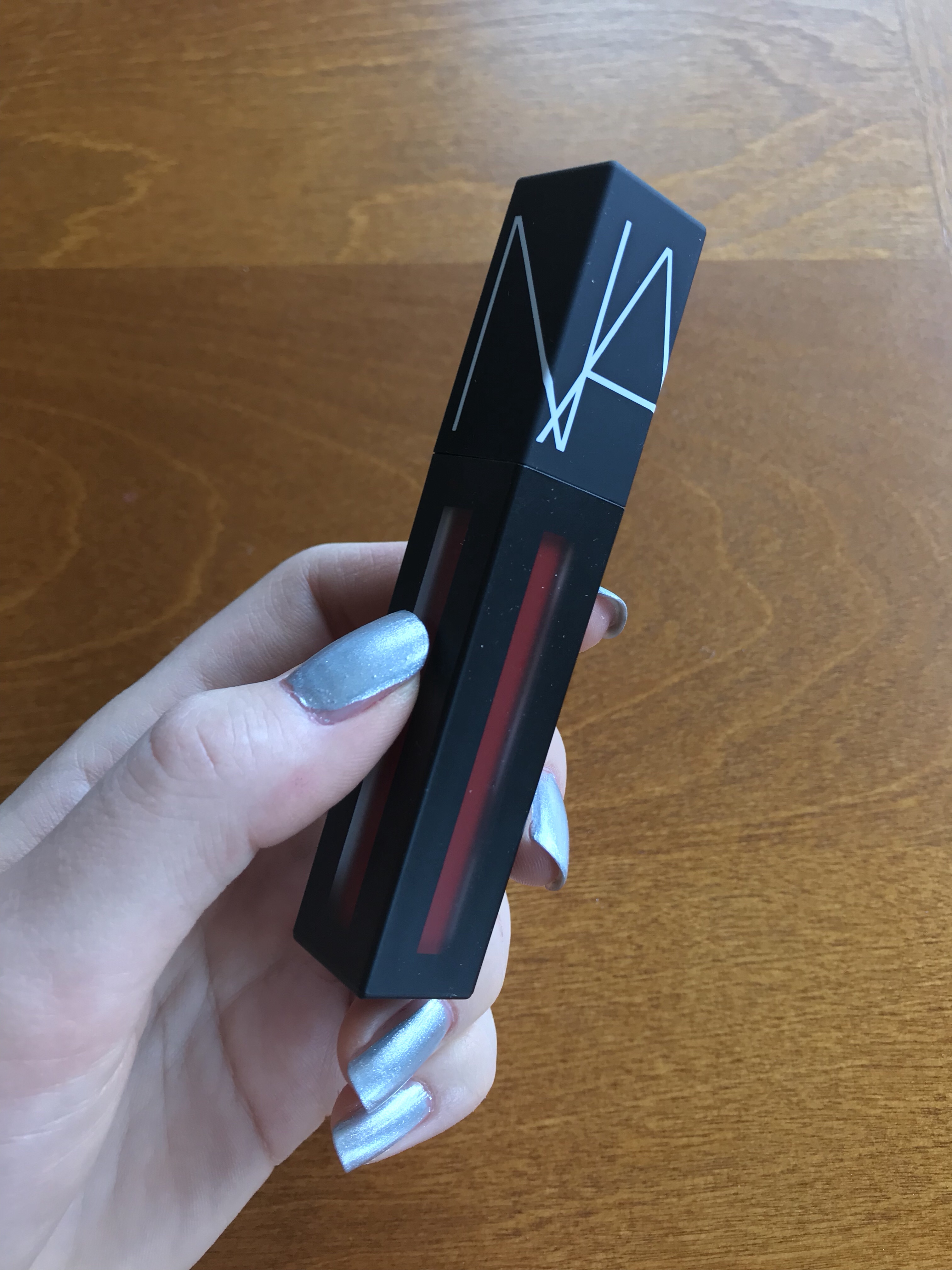 The lipstick is NARS’s Powermatte Lip Pigment in Starwoman, and the accompanying lipliner is NARS’s Precision Lip Liner in Mariachi.