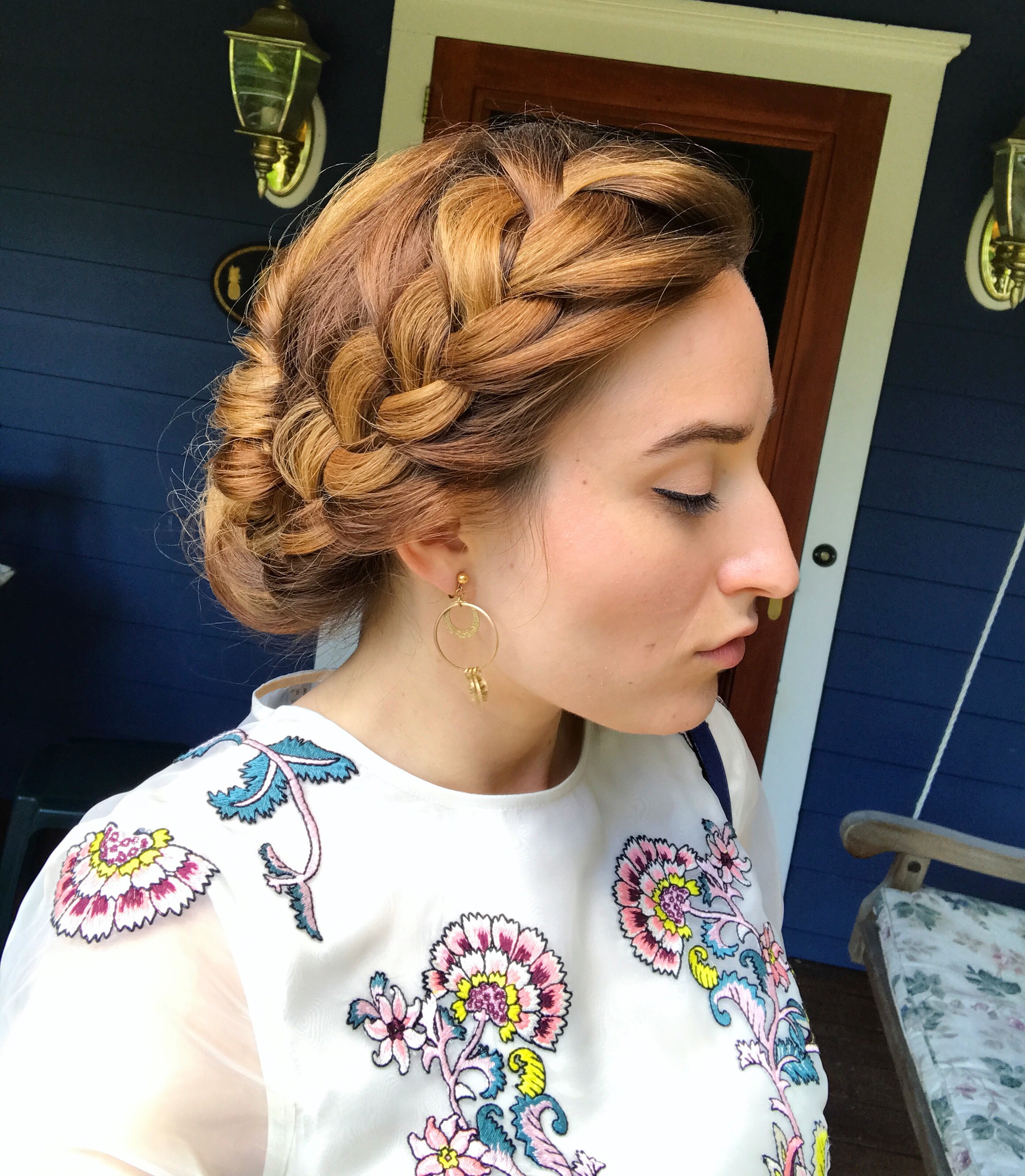 I kept things quintessentially New England for a Newport dinner this past July. An airy copper-coral dress and metallic heels are a solid base to play with a pearl necklace and whimsical “bucket bag” clutch from Nantucket.