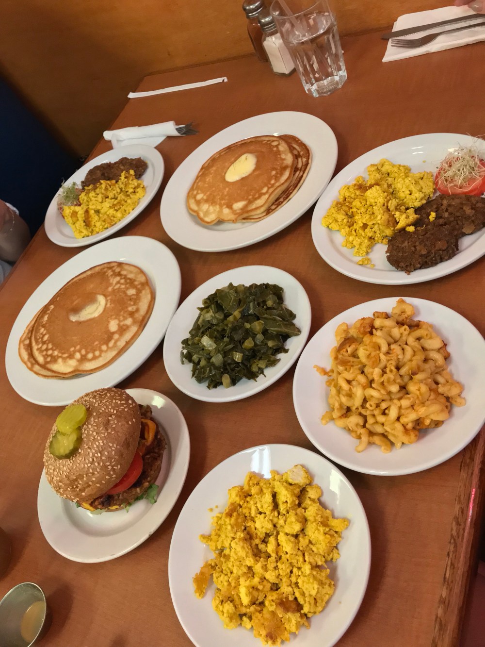 - Soul Vegetarian Resturant (EVERYTHING – collard greens, mac n cheese, signature burger, brunch special)