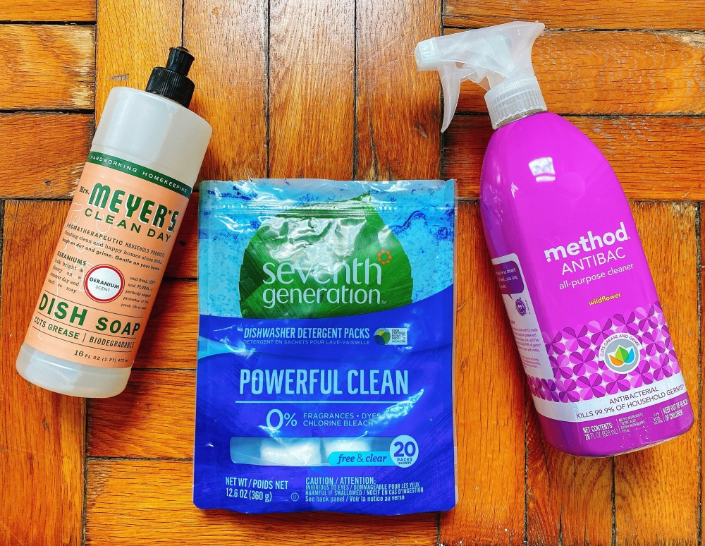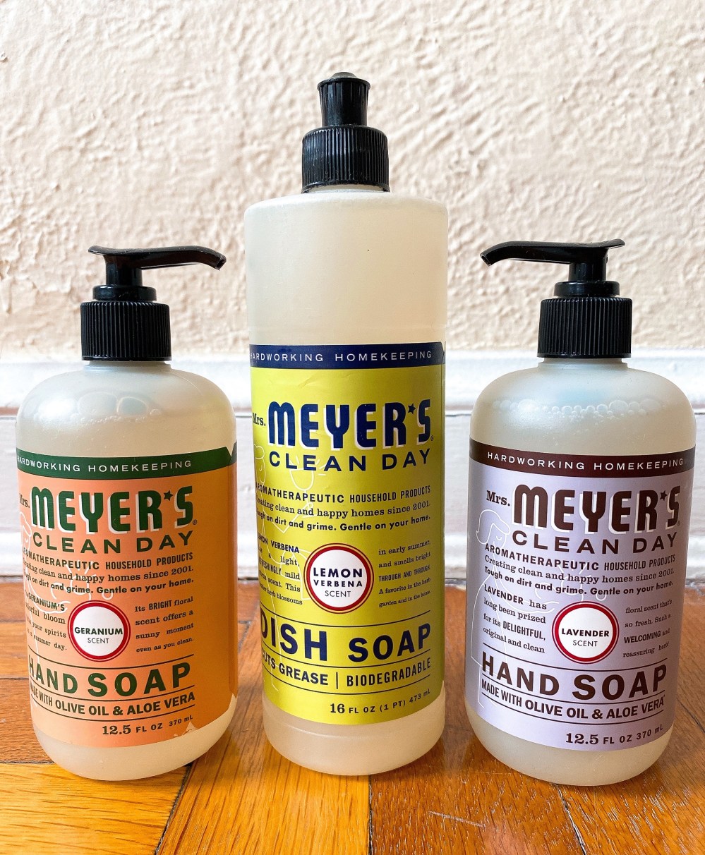 Mrs. Meyers Clean Day – a staple brand in my family, their soaps, laundry detergents, and dish soaps are non toxic but get the job done! I’m a fan of their geranium scented hand soap and dish liquid for the kitchen and lavender hand soap and multipurpose cleaner for the bathroom