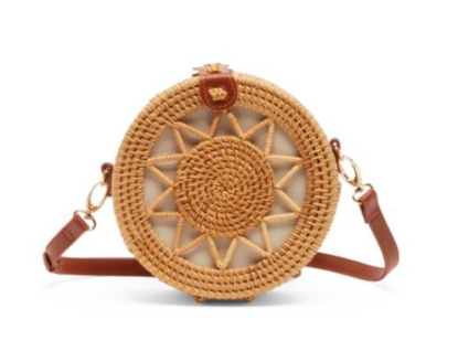 Sole Society Circle Crossbody ($30) // Topshop Woven Straw Shoulder Bag ($40) // Hale Box Crossbody ($90) // BP Rainbow Stripe Straw Crossbody ($45) // Hexagon Woven Crossbody ($58) and also in olive // Brixton Layla Woven Top Handle Bag ($79) // Ted Baker London White Trimmed Harppr Crossbody ($159)