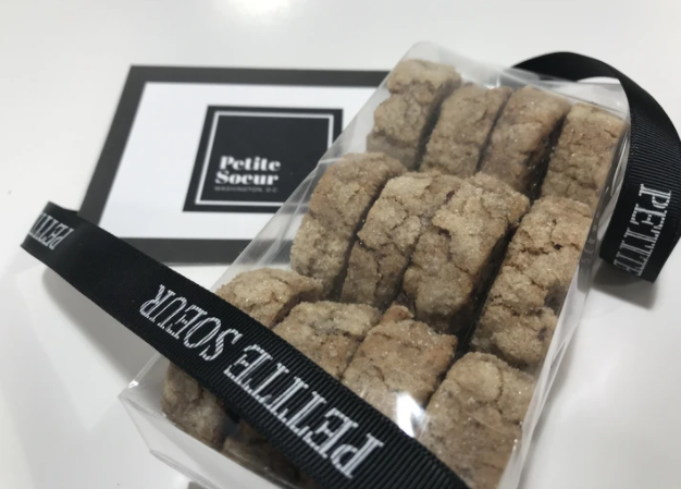 - Petite Soeur – French pastries, but made in DC? This Black, female chef was trained at Le Cordon Bleu and worked in the DC restaurant scene for many years before starting this business. I’d recommend the Chocolate Hazelnut Diamant Sablé cookies for $12.