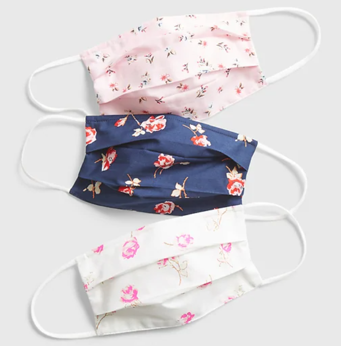 Reversible Cherries ($8) // GAP Multi-Floral 3-Pack ($5) // Cherry Blossom in Navy/White ($13) // Vera Bradley Floating Garden ($8) – buy 2 get one free // Baublebar Black & Plaid mask set ($8) // LOFT set of 3 ($5 with code FAVES) // Draper James Spring Ditsy Floral Print ($12) // Variety of Floral 3-layer Embroidered Face Masks with Nose Wire Adjustable Ear Loops (prices vary, about $13 each) // Watercolor Spring Mask ($5)