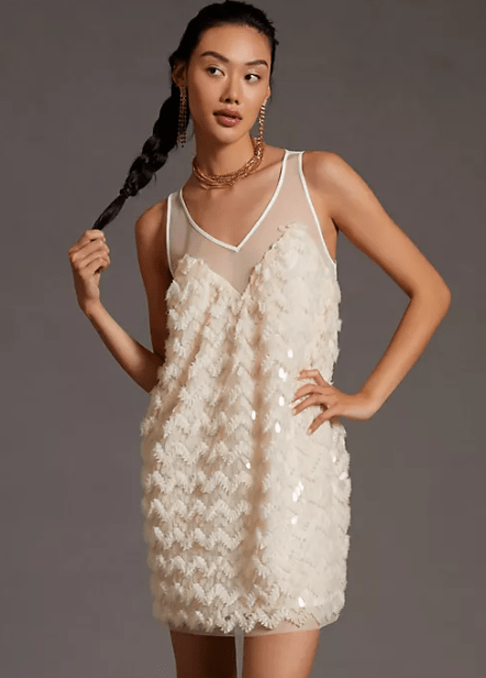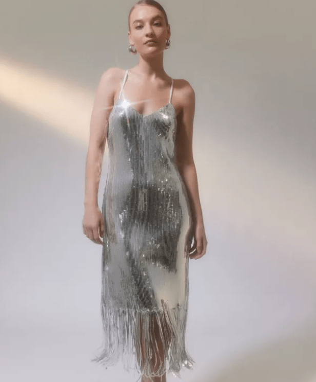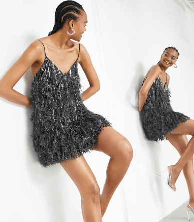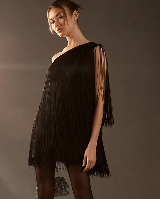 This Anthropologie dress ($230) is the closest I’ve found to the Sail to Sable thrifted dress I’m wearing in my birthday photos // ASOS DESIGN embellished fringed mini dress in pink ($178) // Charcoal Sequin & Faux Feather Minidress ($200) // ASOS EDITION sequin halter mini dress with faux feather hem in sage green ($171) // UO Glamorous Sequin Fringe Midi Dress ($119) // Hutch One-Shoulder Fringed Mini Dress ($140)
