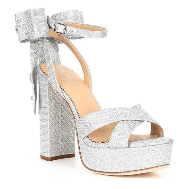 My exact Antonio Melani x Nicola Bathie Lila Bow Detail Platform Dress Sandals ($130) // ASOS DESIGN faux feather clutch with resin handle in purple ($18.50) // Express Rhinestone Knot Strap Slouch Bag ($90) // Rhinestone Headband hairpiece Crystal Gatsby Headband ($18) // Public Desire Wide Fit Midnight heeled shoes with bow detail in black ($61) // Altar’d State Rhinestone Headband ($20)